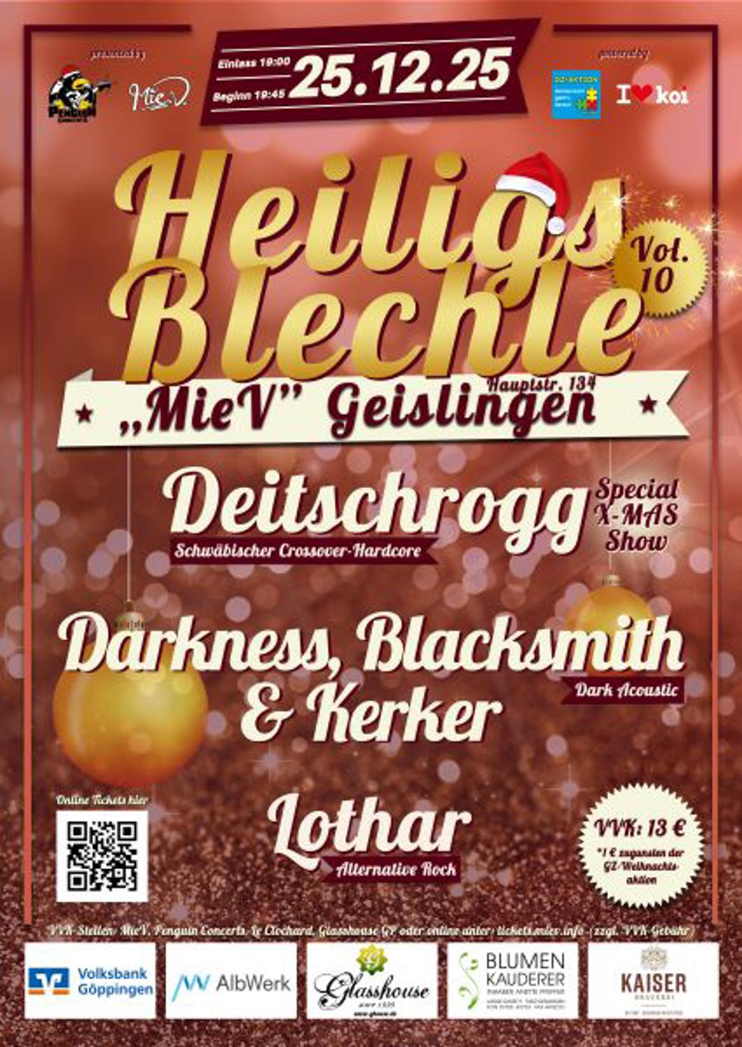 DEITSCHROGG (Special XMas-Show) Schwäbischer Crossover-Hardcore aus Stubersheim DARKNESS, BLACKSMITH & KERKER Dark acoustic and amplified sound experience aus Göppingen LOTHAR Alternative Rock aus Göppingen