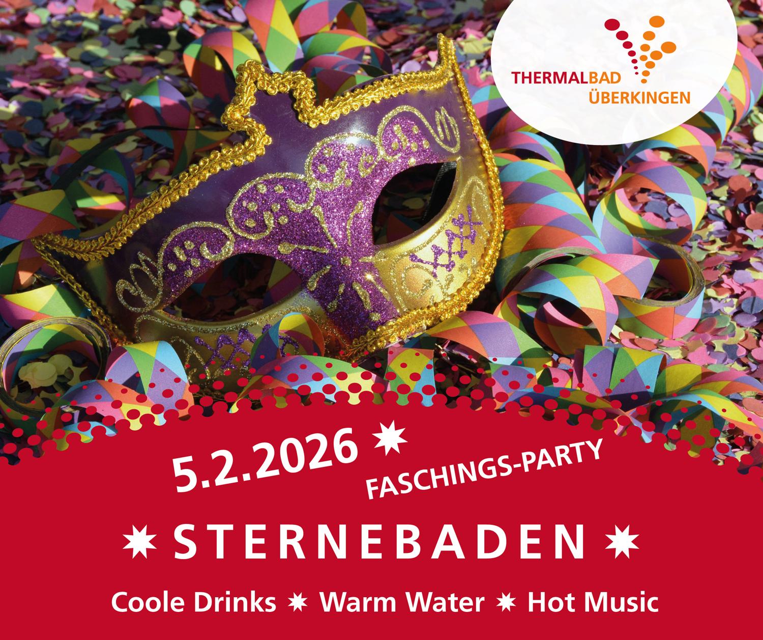 Fasching mal anders – feiern, baden und tanzen unter dem Sternenhimmel im warmen Wasser. Freut euch auf 🍸 coole Drinks ♨️ wohltuend warmes Wasser 🔥 heiße Musik & beste Stimmung Maske oder Hut nicht vergessen – Kostüme sind ausdrücklich erwünscht! 🥳 Wir freuen uns auf einen närrischen Abend mit euch 💜