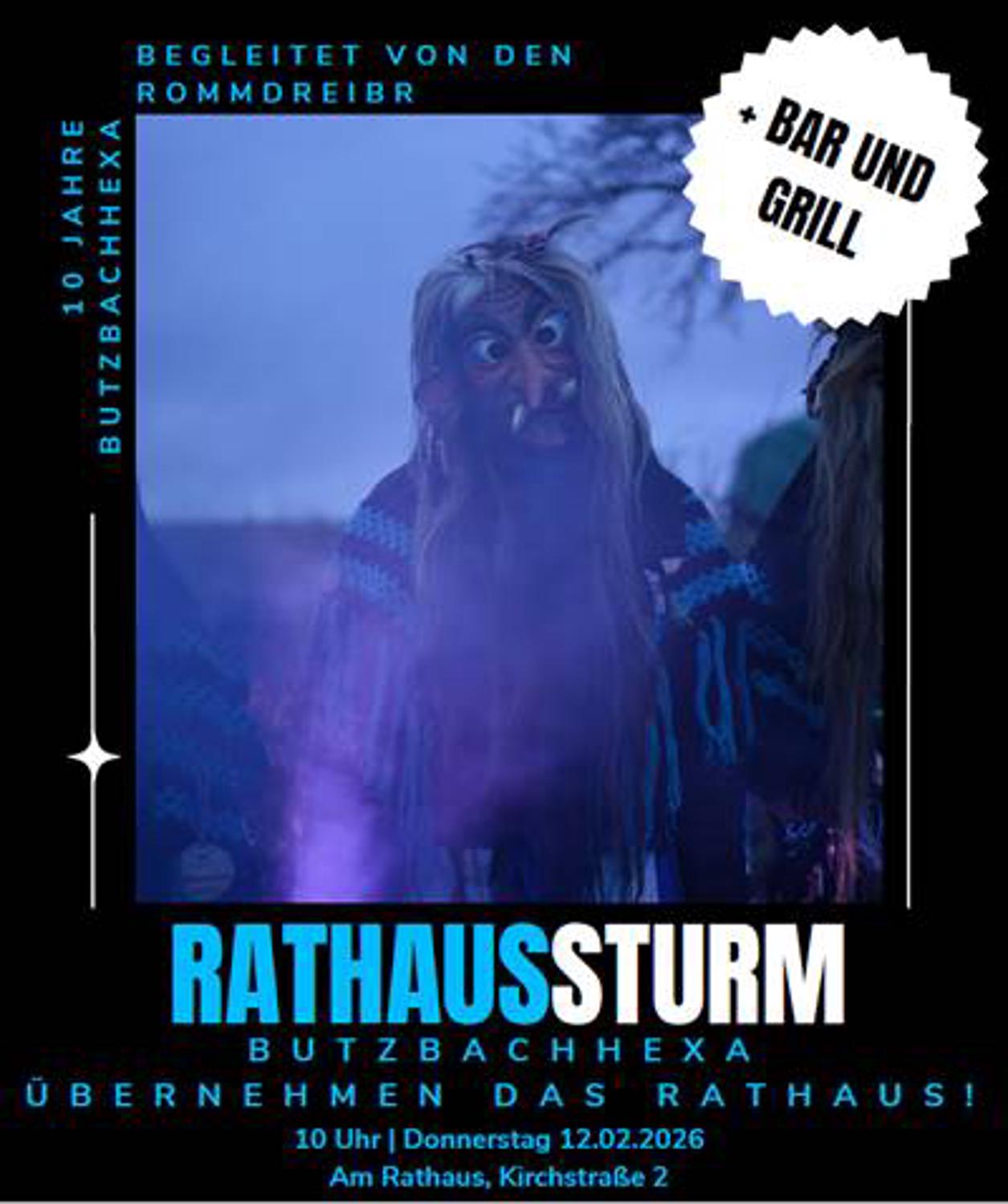 Die Butzbachhexa Uhingen feiern dieses Jahr ihr 10-jähriges Bestehen und wollen am morgigen Gombige Doschdig, 12. Februar, um 10 Uhr das Rathaus in Uhingen stürmen. Anlässlich ihres runden Geburtstages erhalten sie Unterstützung der Guggenmusiker Rommdreibr aus Rechberghausen und wie in den Vorjahren von zahlreichen Kindergartenkindern. Außerdem gibt es erstmals Rote vom Grill für hoffentlich alle kostümiert erscheinenden Besucher.